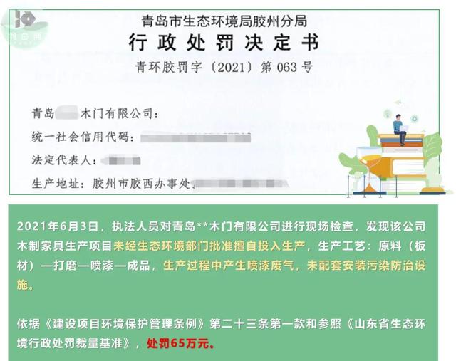 青岛一企业因喷涂废气排放被罚65万元。