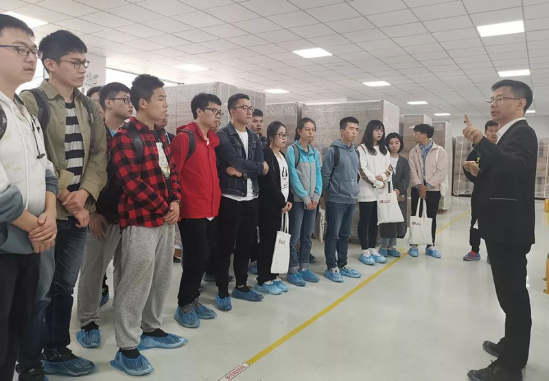 师生们饶有兴致的参观了球盟会生产车间和研发中心。在现场,我们特别针对过滤器的制作工艺、检测验证和装备设备为大家做了详细介绍。
