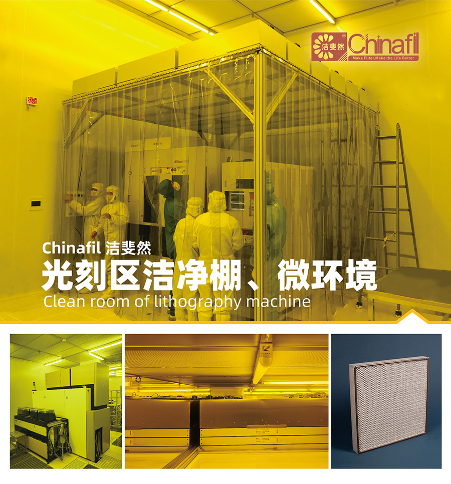 球盟会光刻区洁净棚、微环境已广泛应用在科研院校光刻实验室、集成电路研发设计中心、光刻机集成电路产线等工况,为ASML、Nikon等光刻机提供优质的空气管控方案。