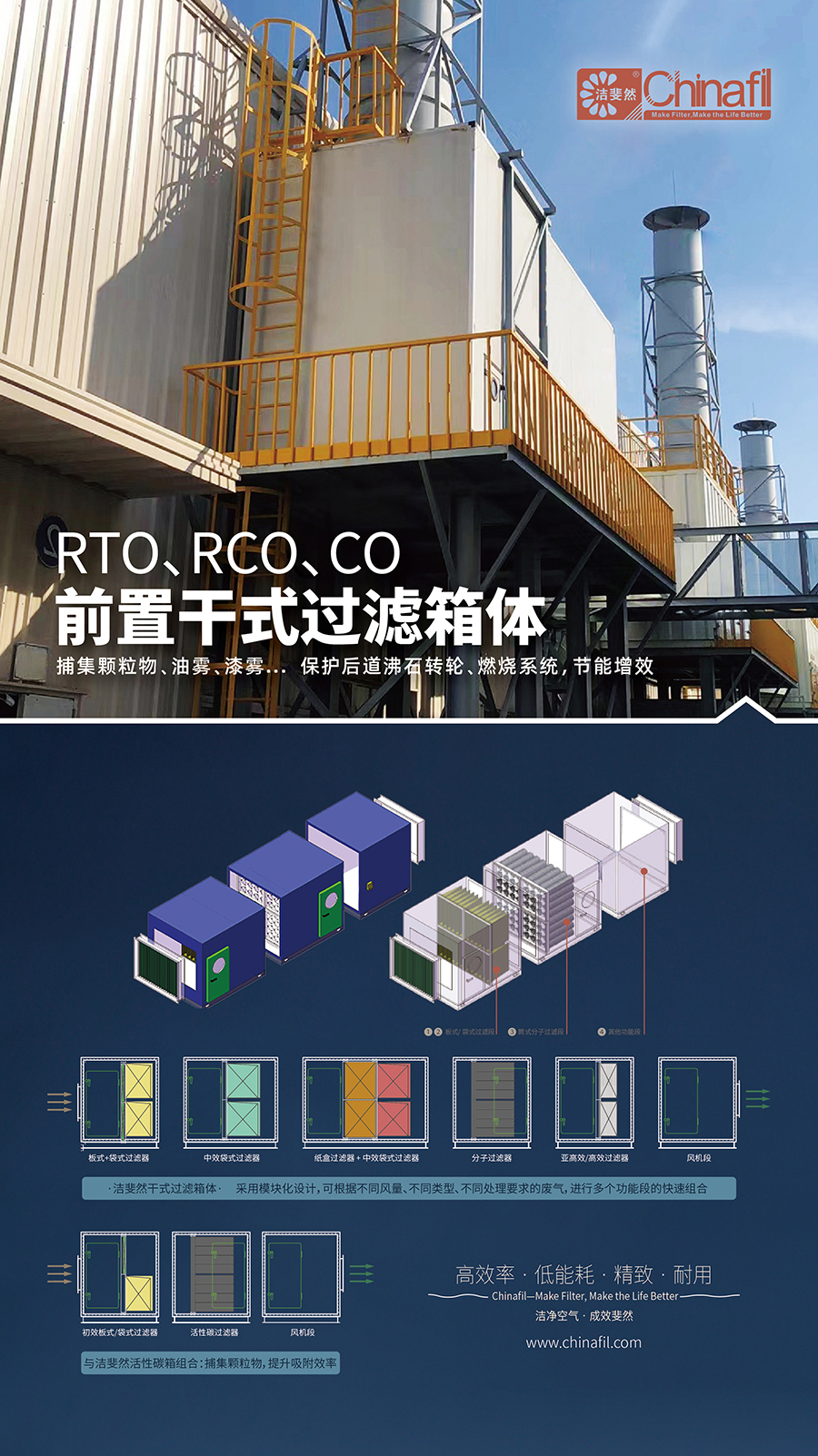 球盟会干式过滤箱体适配一级或多级过滤器,对颗粒物、油雾、漆雾等物质进行拦截捕集,❶提高废气处理效率,❷为沸石转轮、燃烧系统提供保护,减少转轮、蓄热燃烧设备