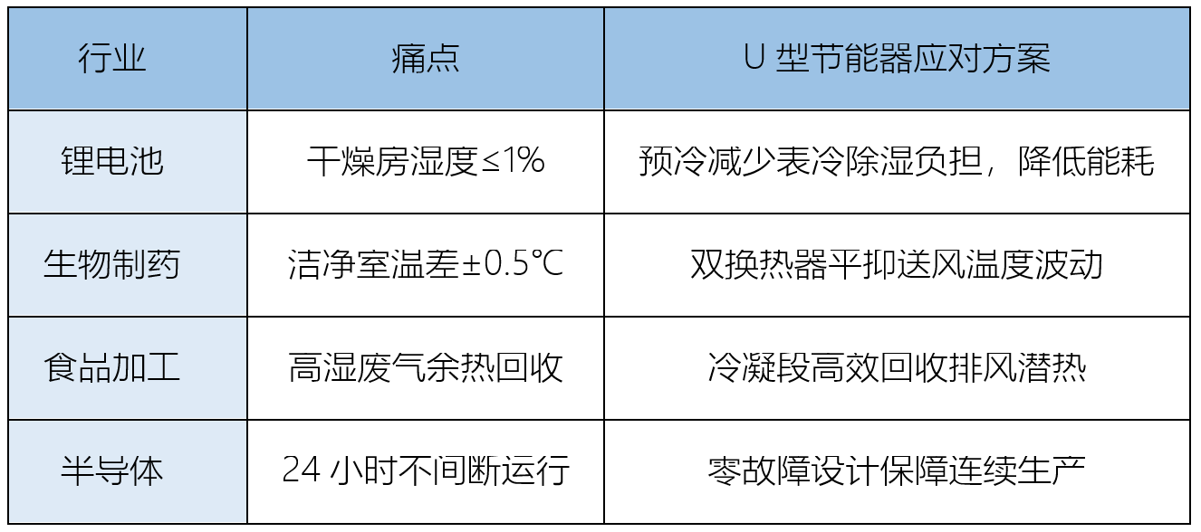 在锂电车间、无菌药厂等对温湿度波动敏感的场景,球盟会U型节能器展现出不可替代性: