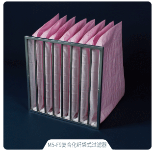 袋式过滤器具有好的容尘功能,按过滤等级可分为初效袋式过滤器、中效袋式过滤器;按滤材可分为:化纤袋式空气过滤器、合成纤维袋式空气过滤器、玻纤袋式过滤器、活性炭复合袋式空气过滤器等;框架材料分为PS、PP、ABS、镀锌钢板、铝合金等材质;