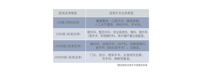 球盟会洁净医疗系统空气净化解决方案包括手术室层流净化、手术室空气过滤、ICU病房空气净化、传染病房空气净化、传染病房排气过滤、无菌病房空气净化、静脉配置中心空气净化等等,涵盖新建和改造升级。净化的基本方式是:室外空气通过气流通道时进行初中高效多级过滤,使空气品质达到GB50333-2013规定的洁净等级,以满足手术、康复治疗的需要。